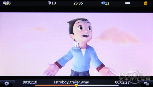 笔者尝试将多部1080P影片在艾诺V9000HDG中进行测试,发现播放流畅自然,完全应付自如。测试影片《金刚》分辨率为1280×720,平均码率约为7M,码率峰值达到16M,播放流畅,无色块、丢帧、卡顿等现象,在快进/快退时定位迅速。小编以另外一部堪称“变态测试”,平均码率16M,峰值码率53M的影片在V9000HDG中播放,发现这传说中的“变态测试”对于V9000HDG来说还是可以应付的,播放尚算流畅,只是在激烈打斗场面稍稍有些不够顺畅。在视频播放中,艾诺V9000HDG色彩显示丰富,细节表现得相当细腻,完全能够体会到高清影片的震撼。