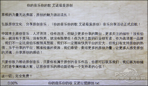 艾诺V9000HDG采用了较为常规的电子书阅读界面,良好的屏幕显示素质保证了阅读的舒适感。书签和字体设置等一些功能还是应有尽有的。