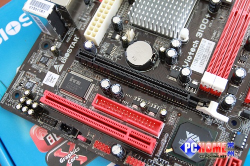 映泰这款一体主板个头虽小,但扩展接口一点也不含糊,具有2个S-ATA接口、1个IDE接口、1根PCI接口以及PCI-E 16X独立显卡接口。