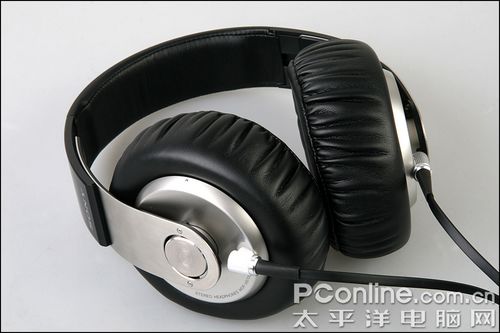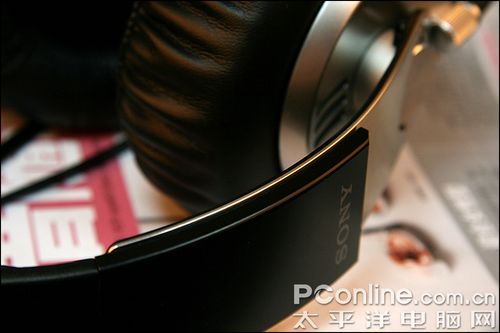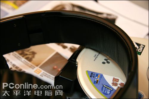 耳机顶部的头夹也采用了类皮质材料做衬垫,由于整个头夹都是宽扁平设计的,因此佩戴压力同样很平均。