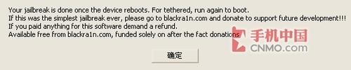 下载对应版本的黑雨RC3解压到PC,点击越狱工具黑雨Blackra1n RC3,稍等几分钟就可以完成越狱。