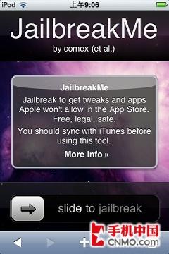 iOS 4的越狱使用JailbreakMe,过程非常简单,只需用你的手机登陆http://jailbreakme.com/即可。。
