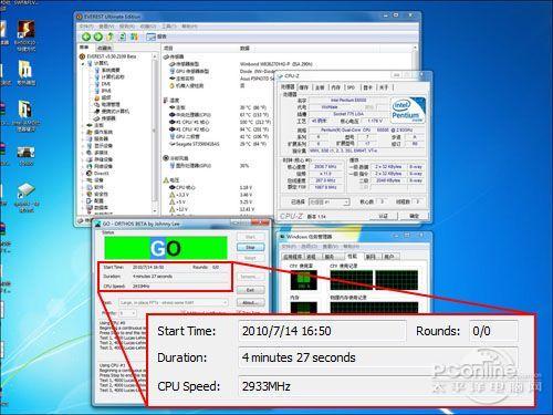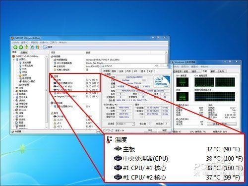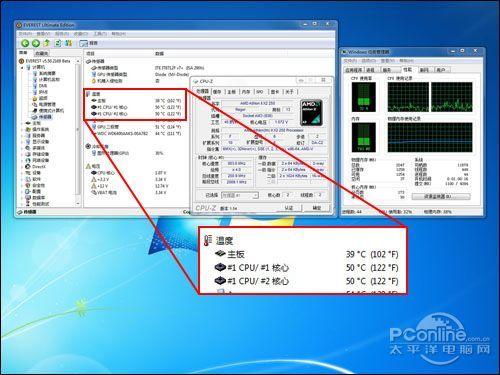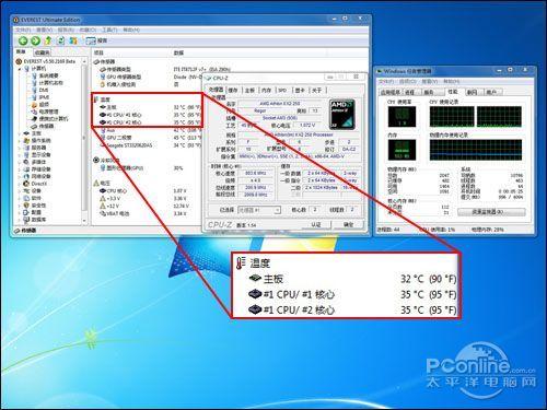 测试在我们PConline评测室内进行,室内环境温度控制在24℃~25℃之间,湿度保持在31%。测试平台采用机箱封闭测试,使整套平台更接近普通用户日常的实际工作环境,并通过监控软件EVEREST中的温度监控功能,实时监控CPU的温度变化。