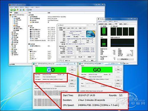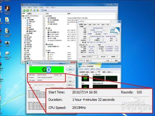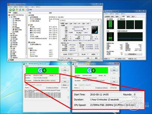 第二关规则,我们采用ORTHOS软件使核心达到满载状态,模拟用户运行游戏、大型软件等高负载的应用环境,限时一小时,看谁先出现不稳定情况。