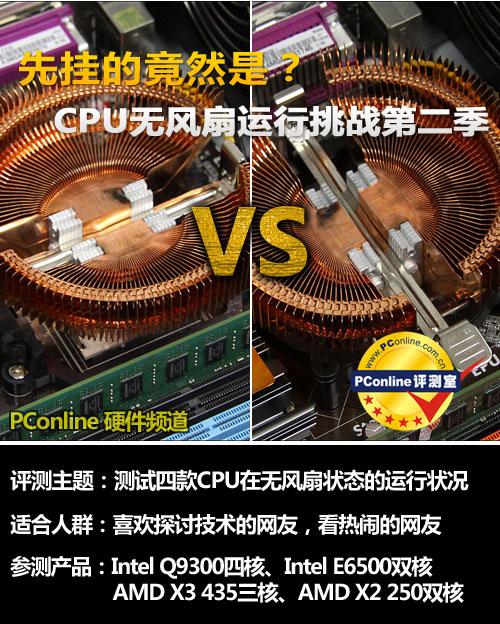 前言:在这炎炎夏日里,万一你的CPU风扇停转了会出现什么状况?最常见的答案是蓝屏、重启、死机。但对于现在的主流电脑,事实证明不一定是这样的结果,为此我们还特别策划了“CPU无风扇运行生存大挑战”,文章一出,便引起了网友们的广泛关注与激烈讨论,有支持的,也有反对的,其中很多网友表示用Intel双核和AMD三核比较不公平,要求加入Intel四核和AMD双核比较。