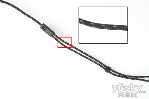 在这里有一点值得一说的是,在这款耳机的耳塞上有一个类似于出风口一样的孔,笔者估计这个孔采用了音箱原理,类似于倒相孔,可以起到一定的通风作用,导出杂音,即使长时间佩戴耳机,也不会有闷闷的不适感。