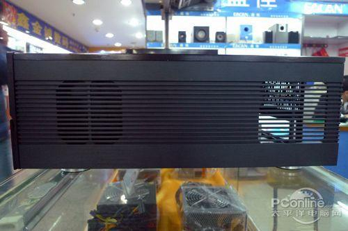机箱配备了三个12cm风扇,一个安装在左侧,另外两个安装在右侧。三个风扇转速为1200RPM,风扇的噪音非常低,比Grandia GD02采用8cm风扇的情况要安静得多。此外,机箱前置了2个USB2.0接口和声音接口,与开关分布在了前面板的左右两侧,设计十分合理!背部大量的散热孔设计对于散热需求量大的用户来说也是非常不错的选择!
