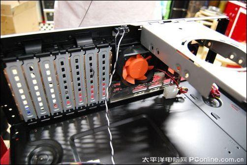 在PCI扩展插槽位,Tt DH202(VJ80051N2Z)机箱采用了具有散热孔的活档片设计,用户装机时即使拆错也可以回填,还可以继续加强机箱的散热效果。