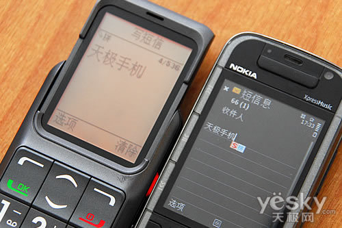 我们进行一段文字录入,并且和诺基亚5730XM进行对比,可以看到录入同样的文字,雅器S738的显示效果更加清晰,即使是较远的距离亦可以观察清楚手机上所显示的内容。