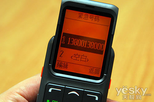 在机身背面一颗醒目的SOS键,是雅器S738手机的一项核心功能,通过SOS键,老年人可以在身体不适的情况下进行求助,只要事先设定好求助电话和求助短信,按下SOS键后,手机会自动发出一条短信,并且多次重播求助号码,于此同时,手机还会发出警报声以引起周围人的注意,三项自救功能为及时就诊争取了时间。