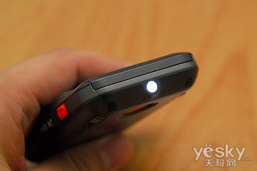 雅器S738机身侧面左侧设计音量控制键,机身右侧为手机键盘锁,拨轮按键的设计操作简单,降低了误操作出现的可能。机身顶端设计了一颗LED灯,用于照明使用,非常贴心。而在机身底端则设计了3.5mm耳机接口与充电器接口。