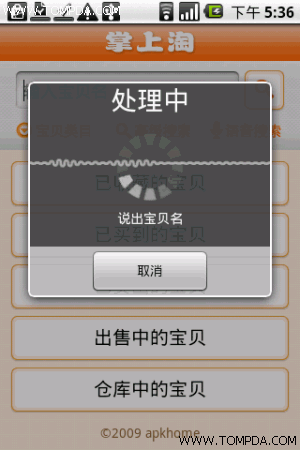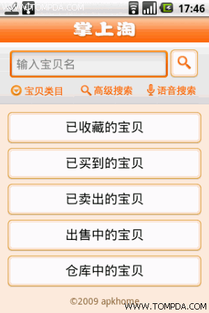 掌上淘是基于Android手机的掌上淘宝平台,同时面向淘宝买家和卖家。对于卖家,可以随时随地(比如出差或进货以及没有电脑的时候)即 时查看自己的订单情况,可以即时获取新订单通知,处理发货等等,总之,帮助卖家时刻掌握每一笔订单,赢得买家的心;对于买家,可以随时随地通过掌上淘寻觅 宝贝,找到中意的宝贝可以将其加入收藏,或者通过短信,邮件,蓝牙多种方式与好友分享,同时还可以时时刻刻跟踪已买到的宝贝的状态。