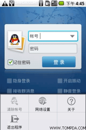 QQ是每位玩家的必装软件之一,腾讯的ndroid版官方QQ自然不能落下,新版本增加很多功能,非常不错,增加了资讯,我的应用,酷站导 航板块,内置浏览器,可以浏览网页,而且效果不错,可以使用QQ空间,QQ农场,QQ邮箱等QQ功能,支持聊天记录删除功能,支持在线好友分组功能,优化 部分交互体验,优化部分掉线问题,最下方的功能切换条也变得更加的漂亮。