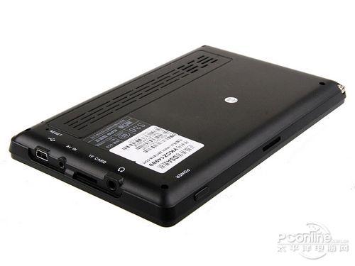 神行者S30机身侧面安排了开关、CMMB天线、USB接口、AV-IN接口、TF卡槽和耳机接口,至于常见的触摸笔并没有内藏在导航仪中,而是移至背夹中了。背部方面则安排了RESET按键和喇叭扩音孔。