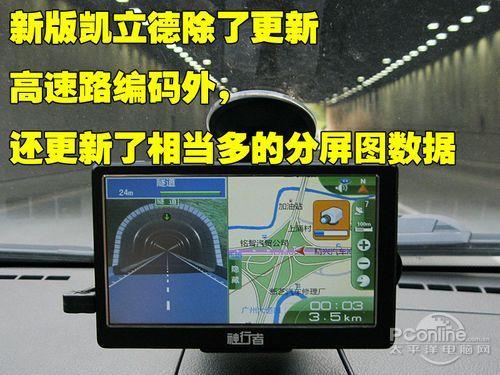 除了全屏实景地图外,最新版的凯立德导航系统还大量增加了分屏提示图,隧道、分岔道以及引桥等都有相应的分屏提示,导航的指示效能不错。