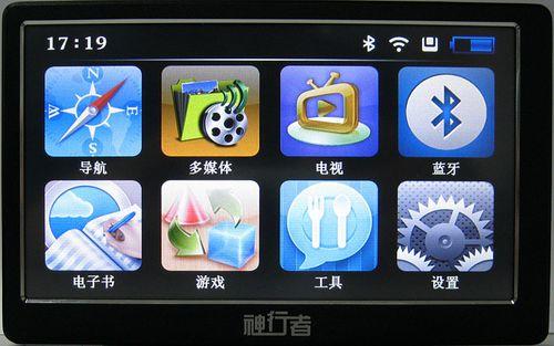 神行者S30主菜单功能包括有导航、多媒体、电视、蓝牙、电子书、游戏、工具和设置总共8大项目。尽管采用了频率稍低的MT3351处理器,不过软件运行流畅程度也不会让人感到失望,反应还是非常快捷的。