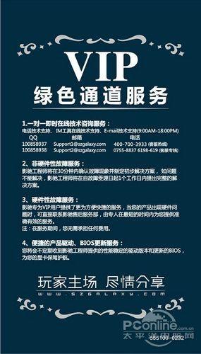 作为显卡厂商,售后服务的质量好坏同样能够体现一个厂商对自家品牌和用户的重视程度。而影驰除了对“看得见”的产品进行保修外,还非常注重售后服务。影驰很早就开通了绿色VIP通道,致力于提供全面、专业的主动式售后服务。同时影驰在400电话、俱乐部论坛和用户群这三大块中,确保用户的售后服务请求都能得到迅速相应,并且提供专人一对一服务。并且定期回访用户对影驰产品的使用情况。