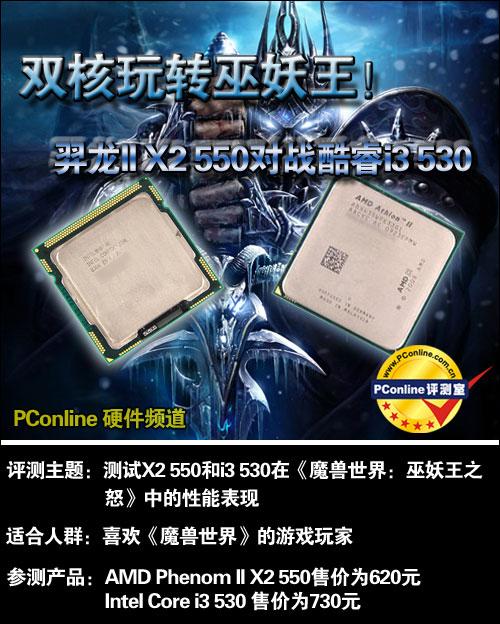 现在大部分的网络游戏只用双核CPU,《魔兽世界:巫妖王之怒》也不例外,对于网游玩家包括魔兽玩家,高性能双核CPU是不错的选择。那么对于Intel和AMD主流级的双核,Intel Core i3 530和AMD Phenom II X2 550,它们谁能更好地玩转《魔兽世界:巫妖王之怒》呢?