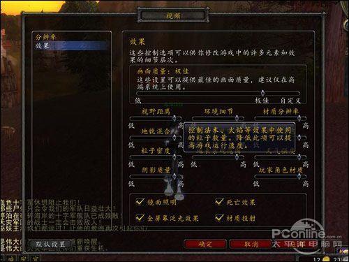 而在画质效果设定上主要分为低、普通、良好、高、极佳和自定义六个个档次,这些设定都会影响到游戏的运行速度以及效果,并且在每项设置选项上都有相关的解释说明,目的是玩家可更具选项说明灵活调节显示效果。