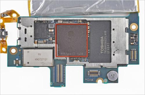 首先,虽然iPod touch和iPad、iPhone 4一样使用了Apple A4处理器,但在这颗芯片中同时嵌入的三星内存容量却不相同。新iPod touch中该芯片一侧的编号为K4X2G643GE,和iPad相同,但同iPhone 4所用芯片标注的K4X4G643GB不同。也就是说,iPod touch内存容量为256MB,与iPad相同,并没有达到iPhone 4的512MB。