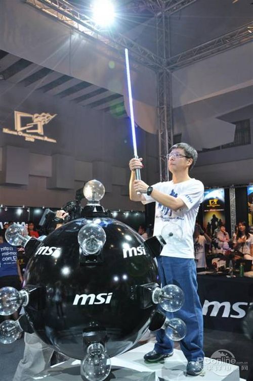 除此之外,赛场为符合今年MOA的主题「星际大战」,整体采用具有星战色彩的科技前卫设计,让每位来到现场的观众皆能够感受到华丽的视觉飨宴。微星科技特别精心安排星际大战帝国501师的Cosplay秀,并邀请到微星科技全球主板业务处副总杨文炜先生以光剑启动原力炉,让观众完全置身于星战场景。另外全台首次展出的星际大战代表──R2-D2机器人,更让现场许多星战迷大呼过瘾,成为全场注目的焦点。
