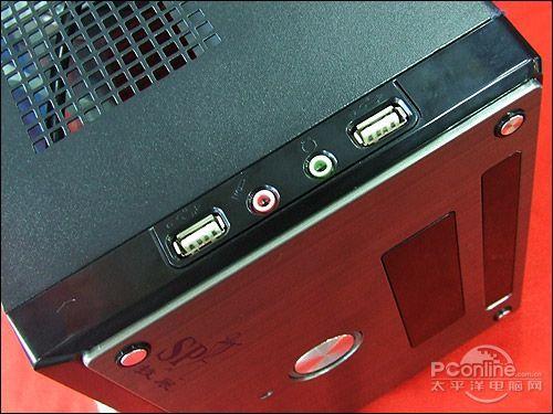 昂达 IU-50机箱正面提供有一个光驱位,USB接口、音频插口和开机按钮隐藏在光驱位旁边,需要打开舱门才看得到,这样的设计使得机箱面板更简洁和美观。