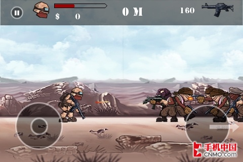 笔者第一眼看到沙漠要塞Desert Slug V1.0版游戏界面时,感觉就是:这是合金弹头。而这确确实实就是9月27日最新上架,由开发商Triniti Interactive Limited最新开发的游戏。中文名笔者将其定为沙漠要塞,版本是V1.0版。固件版本是iOS 3.0及其以上的iPhone、iPad、iPod Touch等都可以安装体验。