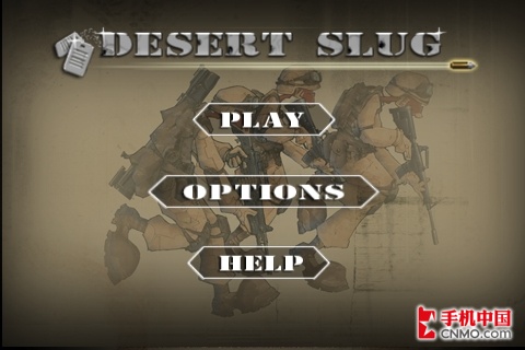 iPhone沙漠要塞Desert Slug V1.0版非常简单,在“Options”选项里,仅有声音、背景音乐和操控设置选项。不需要进行调整,直接点击“Play”开始游戏。
