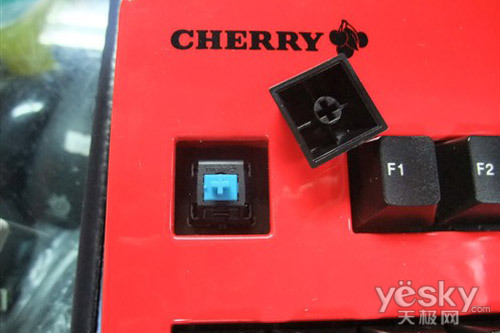 该键盘顶部外壳采用抛光喷漆处理,拥有了靓丽的表面。细心的制作者将被覆盖掉的Cherry重新帖回键盘左上方。