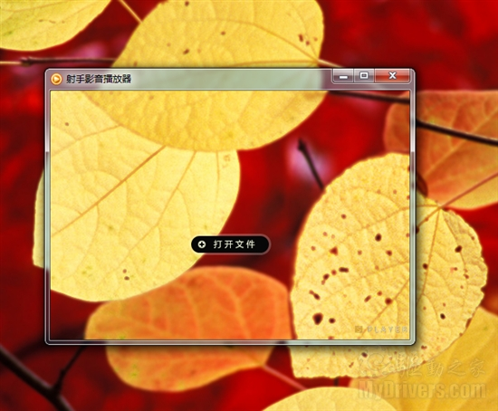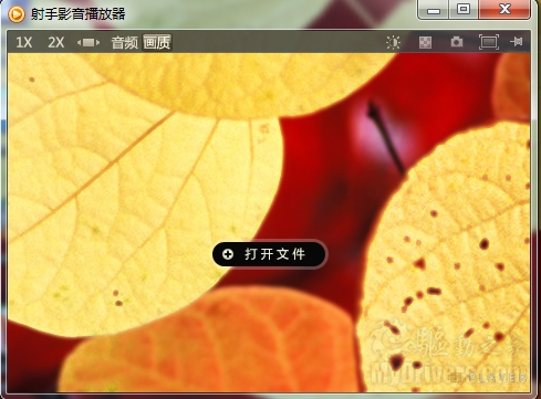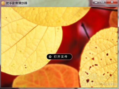 射手播放器的界面非常非常的简洁,以至于除了中间的“打开文件”以外什么都没有,其实功能菜单都被很好的隐藏了起来,当用户移动鼠标,就会发现他们的存在。