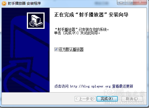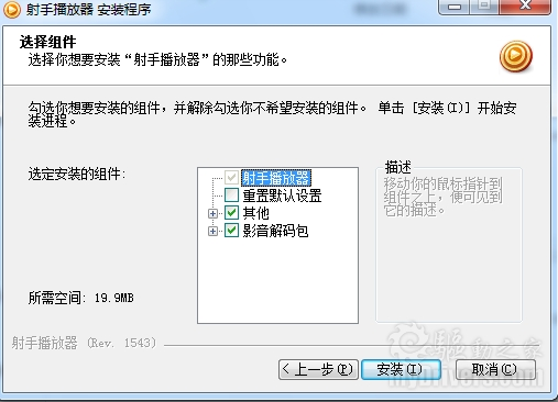 射手播放器的安装界面与暴风影音一致,也并没有捆绑任何工具栏和广告,安装过程便捷。不过值得注意的是射手播放器在安装完毕后会询问用户是否进行文件关联,并不是像QQ影音和暴风影音一样强行关联,表现了软件安装的人性化。