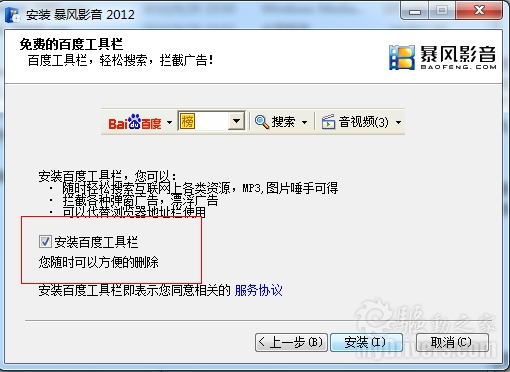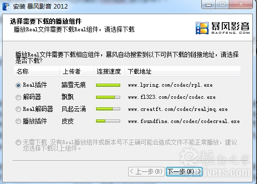 其中有趣的一点是,在暴风影音安装过程中,对于RMVB格式的解码,暴风影音给了用户一个选择题,要求用户自行选择下载RMVB的解码器,或许是考虑到版权问题才不得已而为之吧。