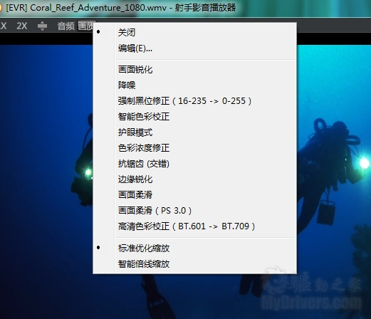 对于QQ影音和射手播放器来说,它们都有自主的画面优化功能,为示公平在截图中并没有启用。