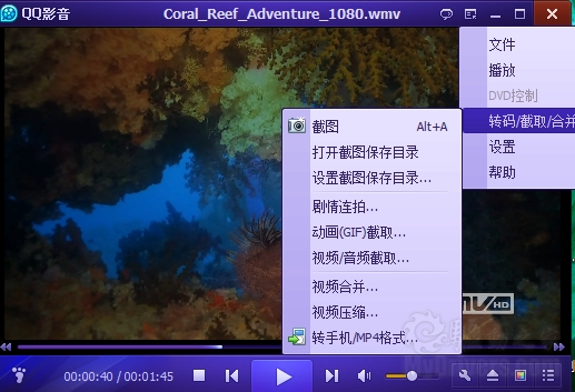 不仅如此,QQ影音还有一些非常实用的功能,例如电影剧情连拍,将电影中的大概场景截取下来,做成一张完整的图片。同时还有影片格式转换,并且支持直接转GIF,可以很方便的将影片的经典片段转成GIF动画与朋友分享。