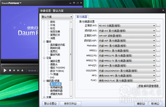 打开PotPlayer的菜单,我们可以看到令人眼花缭乱的设置内容,虽然设置内容分类足够相信,描述也足够清楚,但是面对如此庞大的设置面板,难免会让人晕眩。尤其是编码器和滤镜的具体设置,不是视频解码发烧友根本无法正常驾驭。