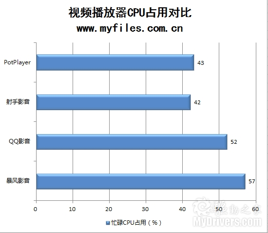 纵观测试成绩,在资源占用方面,射手影音和QQ影音表现优异。QQ影音内存占用最低,CPU占用相比射手高了一些;而射手影音与其相反,可以说是各有千秋。