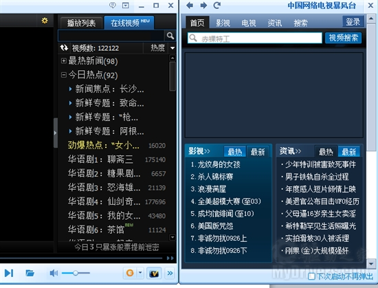 这里需要解释一下暴风影音的1秒以上的启动时间,实际上来说,暴风影音主体窗口的启动时间也在1秒内,但是由于暴风影音在窗口右侧附加了一些资讯窗口,为秉持公平,我们在等待这些附加窗口完全加载完毕后才停止计时,所以说也就是为什么暴风影音启动速度最慢的原因。