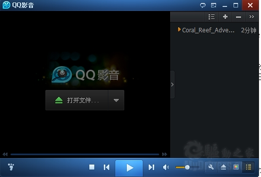 QQ播放器的界面非常的简洁,播放窗口默认是打开文件功能,下侧的功能按钮一字排开,看起来非常的清爽,并且没有任何的广告。