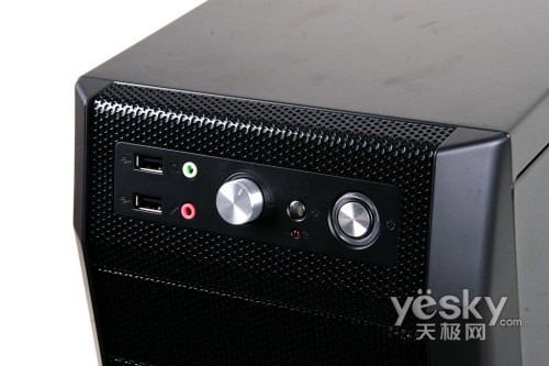 东方城卡卡乐710铁骑士机箱前置USB和音频接口以及POWER等按键均设计在机箱的顶部,非常人性化,方便用户免去了弯腰之苦。另外这款机箱还提供了一个前置和一个后置的风扇,同时可以通过旋钮对风扇的转速进行调解,以达到散热和静音的平衡。东方城卡卡乐710铁骑士机箱下部ABS工程塑料和金属冲网搭配使用,质感非常强烈。