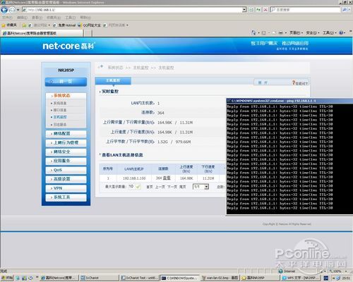 在磊科NR285P的管理界面里我们侦测到下行速度已达到11.3MB/s,这几乎达到100Mbps网络带宽的极限。而路由器反应依然迅速。