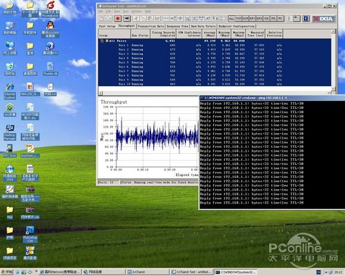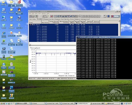 我们把两台电脑分别连接路由器的外网端口及内网端口,在全部管理功能都开启的情况下测试路由器WAN广域网端口与LAN局域网端口的转发性能。