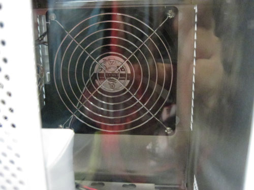 机箱的散热由前置的14cm风扇负责,散热的思路是让风扇把冷风从前面板的空隙中吸入,再从机箱后面排出。采用下置式电源设计,支持ATX PS/2电源安装。配置了一个标准5.25英寸驱动器安装支架,它还可以同时安装2个3.5英寸和2.5英寸HDD。
