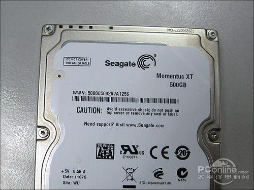 希捷 500G MomentusXT为2.5英寸7200rpm硬盘,容量为500G,配备了32M缓存,还有一颗4GB容量SLC NAND闪存颗粒,用控制器来管理闪存文件。