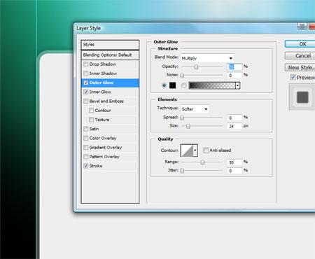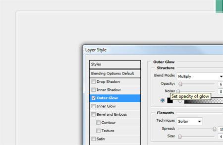 最后添加一个外发光,黑色的15%透明度的,于是一个淡淡的内容区的阴影就这样出现了。