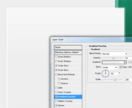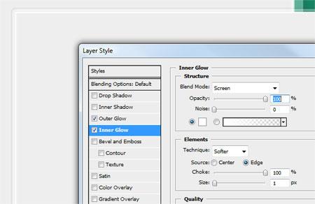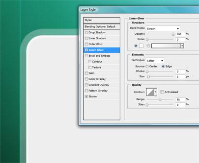 再用内发光工具给侧边栏添加一个白色的边线效果,方法跟上面的一样。调整阻塞选项到最大值,可以让光出现的比较柔和。