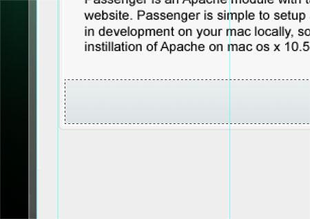 在一个网页设计中设计合理的用户显示器范围是网页布局一个重要的步骤。除非另有要求,我一般都是将分辨率调整到1024×768,因此我在文档的中部将参考线设置为960px宽,两边空白处各有20px宽,这是为了以防一些元素超出之前设置的屏幕分辨率。