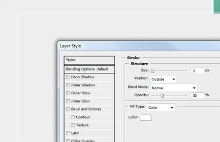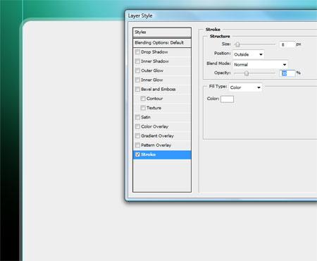 双击圆角矩形图层然后添加8白色描边,宽度为8px,混合模式为叠加然后调整透明度为30%,这样就会有一