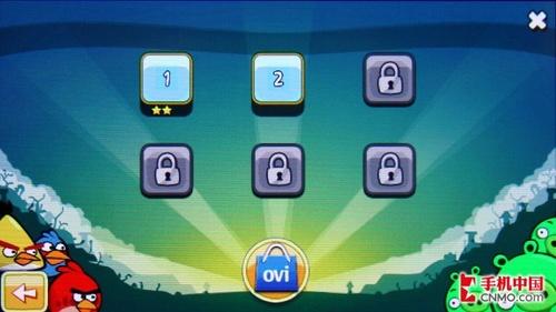在游戏中,玩家会发现随处可见的诺基亚Ovi商店的标志,这表明该游戏上线后,可以通过Ovi商店正常购买正版的Angry Birds。