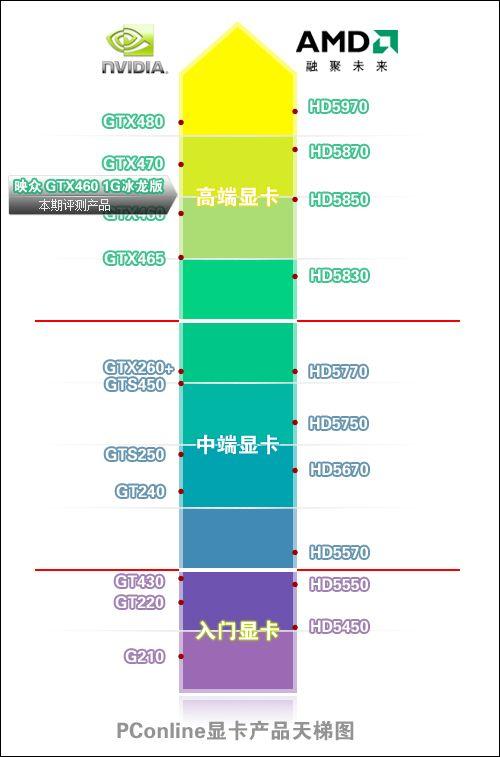 本次测试中,这张映众GTX460表现明显高于公版的HD5850,所以这张显卡的性能定位在天梯图上比HD5850略高的位置。