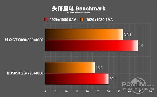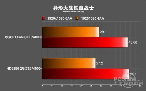 AVP依然是一个为AMD优化的游戏,不过映众460还是能与HD5850基本持平。可见映众460的DX11性能方面的兼容性远比HD5850高。